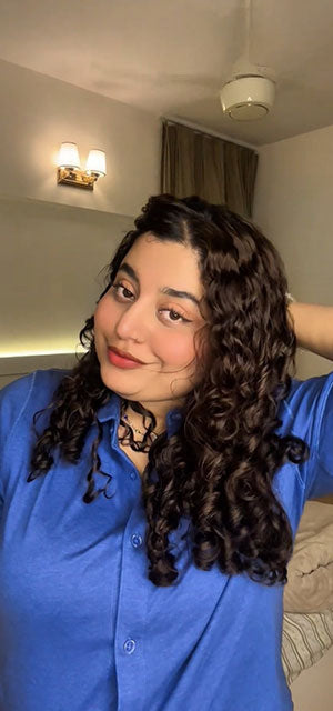 - Take 2–3 pumps (adjust based on your hair length).