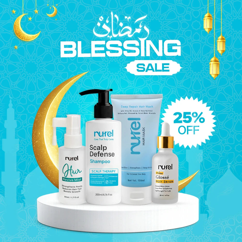 Experience the ultimate hair revival with our Nurel 4-in-1 Hair Restoration Kit, specially formulated for a complete root-to-tip solution. This all-in-one powerhouse kit includes the Herbal Shampoo, Deep Repair Hair Mask, Hair Revive Mist, and Prime Glossé Serum. The Shampoo cleanses and fights dandruff. The Mask deeply repairs damage and breakage. The Mist boosts regrowth and stops hair fall.The Serum locks in instant shine and controls frizz.